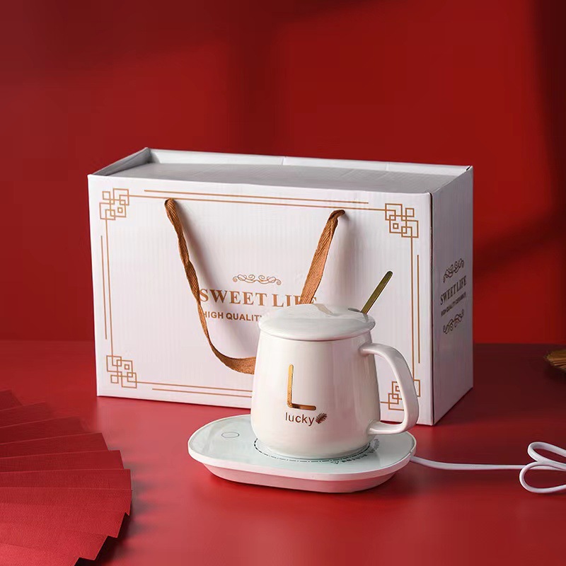 The set consists of a warming pag, coffee mug, teaspoon and heating source(cord).